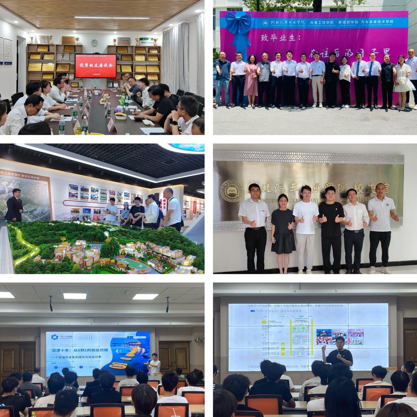 典礼结束后,学院组织校友及教师代表在1126会议室开展优秀校友返校座谈交流会。校合作发展处处长原刃锋、学工部部长王关锋、光电学院党委书记张默、院长熊永臣、汽车商学院院长殷旅江、外语外贸学院院长杨荣广、时任院领导罗时军等领导老师与校友们欢聚一堂。